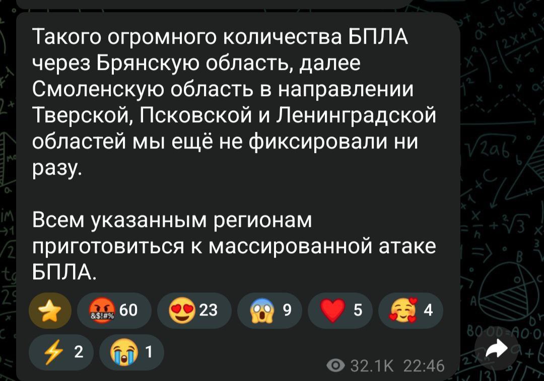 barreling toward Tver, Pskov, and Leningrad Oblasts—not